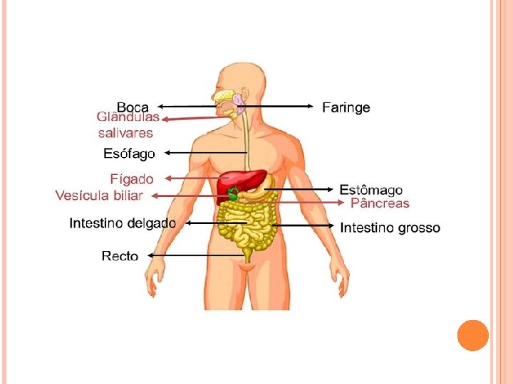 GL NDULAS ANEXAS As glândulas anexas do sistema digestivo, ou órgãos digestórios acessórios, nunca entram em contato direto com o alimento. Produzem ou armazenam secreções que passam para o trato gastrintestinal e auxiliam na decomposição química do alimento.