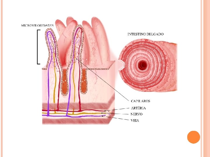 INTESTINO DELGADO As vilosidades intestinais, então, absorvem os nutrientes úteis ao organismo e as substâncias residuais do processo digestivo passam para o intestino grosso, de onde são expulsas sob a forma de fezes