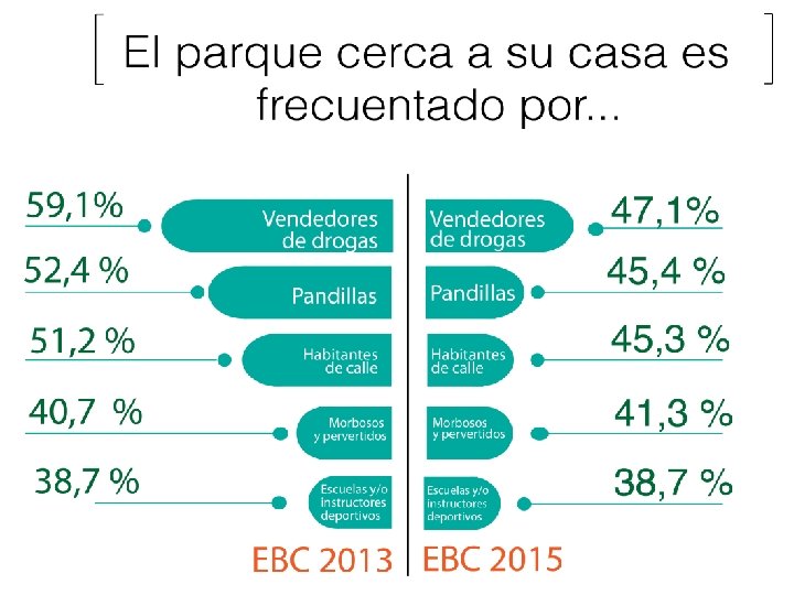 Parque FAMACO RICAURTE SAN ANDRES URBANIZACIÓN AVENIDA CARACAS CIUDAD JARDIN LAS AGUAS ( GERMANIA ) INDEPENDENCIA URBANIZACION EL CORTIJO URBANIZACIÓN PRIMAVERA NORTE TIBANICA BARRIO ISMAEL PERDOMO ATAHUALPA SERAFINA II SECTOR DANUBIO OCCIDENTAL NICOLAS DE FEDERMAN 3 CAYETANO CAÑIZARES URBANIZACIÓN EL TUNAL Total general Si 3. 828 42 5. 408 4. 204 5. 366 792 356 3. 641 12. 741 17. 425 17. 743 2. 858 9. 567 1. 561 4. 849 10. 281 81 100. 743 Agradables No Ns/Nr Total general 17. 412 21. 239 114 156 7. 716 373 13. 497 4. 536 237 8. 977 3. 822 7 9. 195 441 55 1. 288 156 512 1. 179 4. 819 3. 601 16. 342 4. 240 413 22. 078 3. 051 20. 795 355 59 3. 271 928 10. 495 138 1. 699 296 5. 146 160 10. 441 81 48. 145 1. 144 150. 031 Si 18, 0% 26, 9% 40, 1% 46, 8% 58, 4% 61, 5% 69, 6% 75, 5% 78, 0% 78, 9% 85, 3% 87, 4% 91, 2% 91, 9% 94, 2% 98, 5% 100, 0% 67, 1% Agradables No Ns/Nr Total general 82, 0% 0, 0% 100, 0% 73, 1% 0, 0% 100, 0% 57, 2% 2, 8% 100, 0% 50, 5% 2, 6% 100, 0% 41, 6% 0, 1% 100, 0% 34, 2% 4, 3% 100, 0% 30, 4% 0, 0% 100, 0% 24, 5% 0, 0% 100, 0% 22, 0% 0, 0% 100, 0% 19, 2% 1, 9% 100, 0% 14, 7% 0, 0% 10, 8% 100, 0% 8, 8% 0, 0% 100, 0% 8, 1% 0, 0% 100, 0% 5, 8% 0, 0% 100, 0% 1, 5% 0, 0% 100, 0% 32, 1% 0, 8% 100, 0%