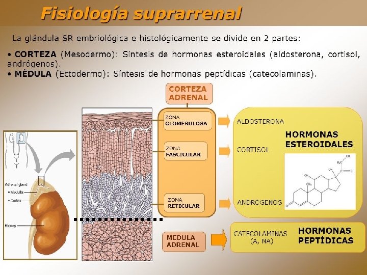Fisiología suprarrenal • MÉDULA SUPRARRENAL: SECRECIÓN HORMONAL • CORTEZA SUPRARRENAL: SECRECIÓN HORMONAL • EFECTOS EN LOS MINERALES-CORTICOIDES • EFECTOS DE LOS GLUCOCORTICOIDES