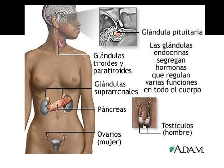 ENFERMEDADES PARATIROIDES: Tetania Cálculos renales Pérdida excesiva de minerales de los huesos HIPÓFISIS: Enanismo Acromegalia Diabetes Gigantismo Diabetes insípida