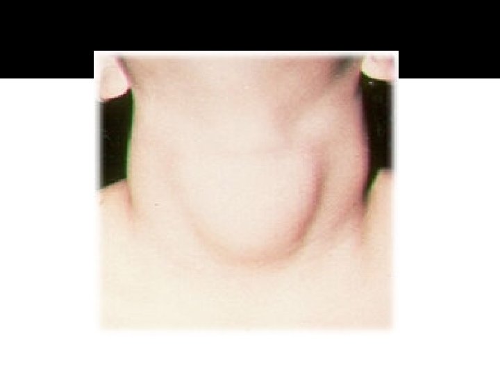 SÍNTOMAS Hipertiroidismo. Observamos el abultamiento en la cara anterior del cuello. Hipotiroidismo - Disminución del rendimiento intelectual o capacidad cognoscitiva. - Falta de fuerza muscular. - Relajación retardada del reflejo tendinoso. Hipertiroidismo - Abultamiento en la cara anterior del cuello. - Afectación ocular. - Inquietud, nerviosismo e irritabilidad. - Taquicardias cuando se está en reposo. - Intolerancia al calor. •