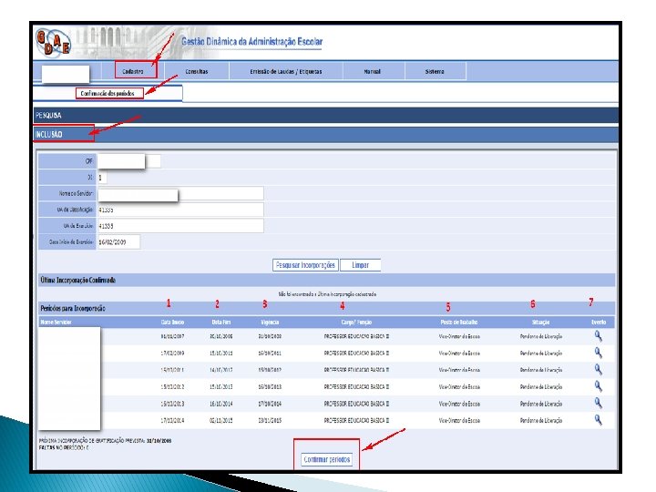 � Confirmação de Períodos: � Vá em inclusão de Períodos, incluir o CPF e DI correspondente do Servidor: