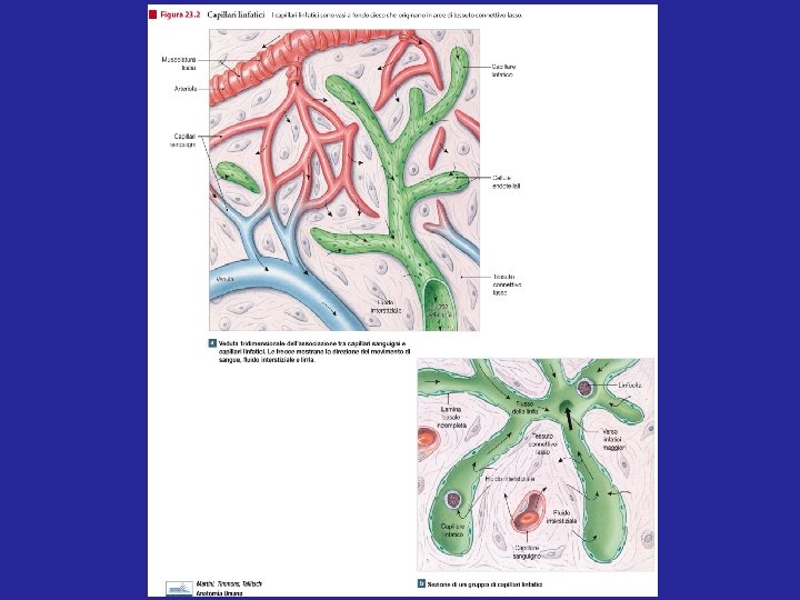 Minivalvole Le cellule endoteliali che formano la parete del capillare non sono strettamente unite; i margini, distaccati, sporgono leggermente come lembi di una valvola, e sono facilmente apribili