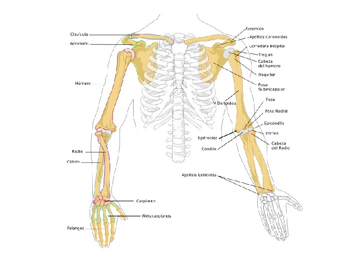 ESQUELETO HUMANO Consta de 206 huesos: -26 en la columna vertebral - 8 en el cráneo - 14 en la cara - 6 en el oído -1 hueso Hioides - 25 en el tórax - 64 en los miembros superiores - 62 en los miembros inferiores