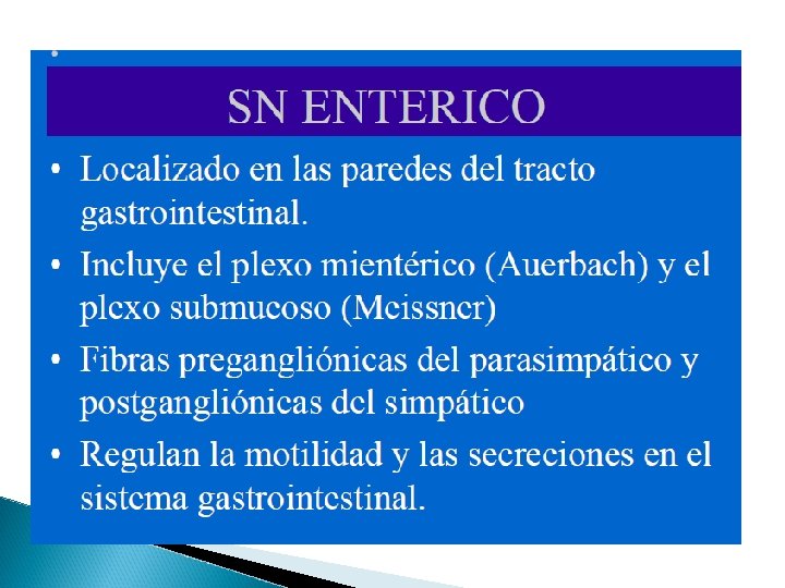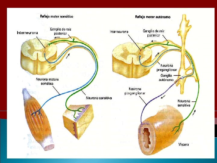 ORGANIZACIÓN ACTIVADO POR: ◦ Médula Espinal ◦ Tallo Cerebral ◦ Hipotálamo OPERA POR REFLEJOS VISCERALES _ Con aferencias viscerales generales Interoceptores como mecanorreceptores son (distensión de organos), etc.