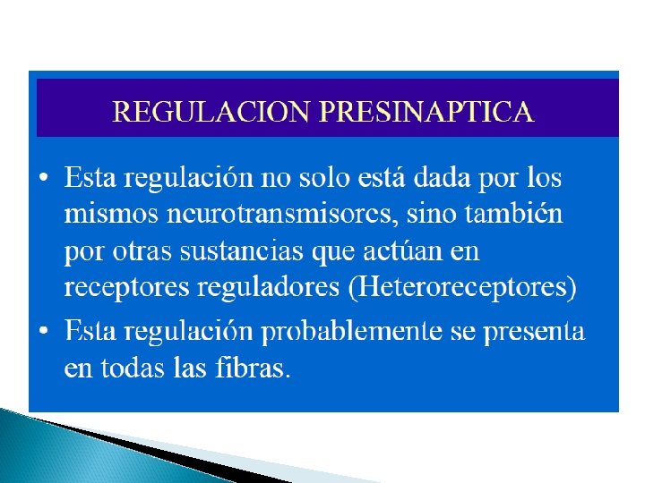 Receptores autonomicos Adrenorrceptores Localización Mecanismo de Acción Alfa 1 Célula post sináptica ML Formación de IP 3, aumento de calcio intracelular Alfa 2 Adrenergica pre sinápticas, plaquetas, linfositos ML Inhibición de la Adenilciclasa, disminución del AMPc Beta 1 Efectoras pre sináptica, corazón, encéfalo, etc. Estimulación de la Adenilciclasa y aumento del AMPc Beta 2 Post sinápticas, ML del musculo cardiaco Estimulación de la Adenilciclasa y aumento del AMPc Beta 3 Post sináptica, células adiposas Estimulación de la Adenilciclasa y aumento del AMPC