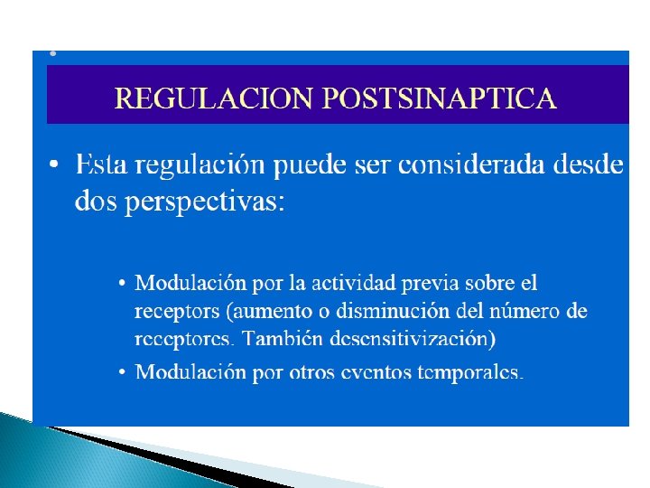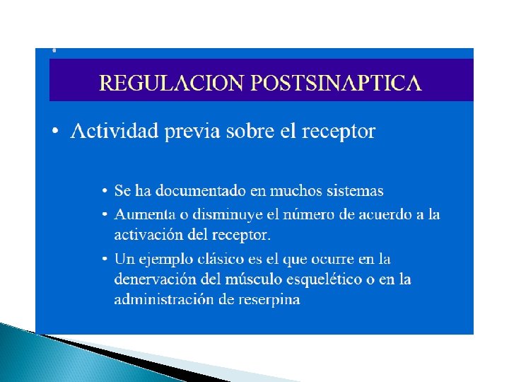 Receptores Excitación o Inhibición Activan Estimulando o Inhibiendo a) Cambio de permeabilidad de membrana abre o cierra canal ionico. b) Activando la enzima adenilciclasa formando AMPc poniendo en marcha acciones intracelulares en la cel efectora La unión con el receptor produce un cambio conformacional y esta excita o inhibe según su naturaleza.