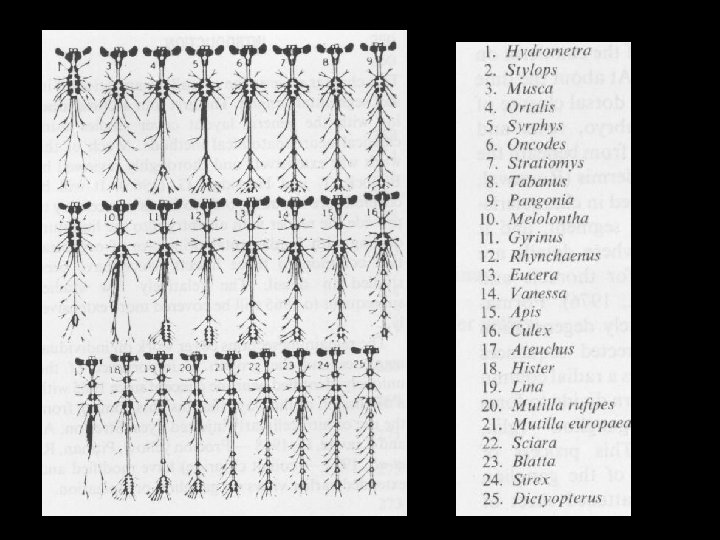 • Neuronas Aferentes o Sensoriales Impulsos nerviosos hacia el SNC Distinción entre vertebrados e insectos, localización del soma: ü Insectos, cerca del sitio de detección del estímulo, dendritas cortas y axones largos. Excepción neuronas ocelares. ü Vertebrados: en cadena ganglionar paravertebral, dendritas largas y axones cortos • Neuronas Eferentes o Motoras Control sobre músculos, principalmente del mismo segmento Axones salen del mismo ganglio por nervios laterales o por conectivos a otro ganglio. Nro de motoneuronas es bajo con respecto a las demás células nerviosas