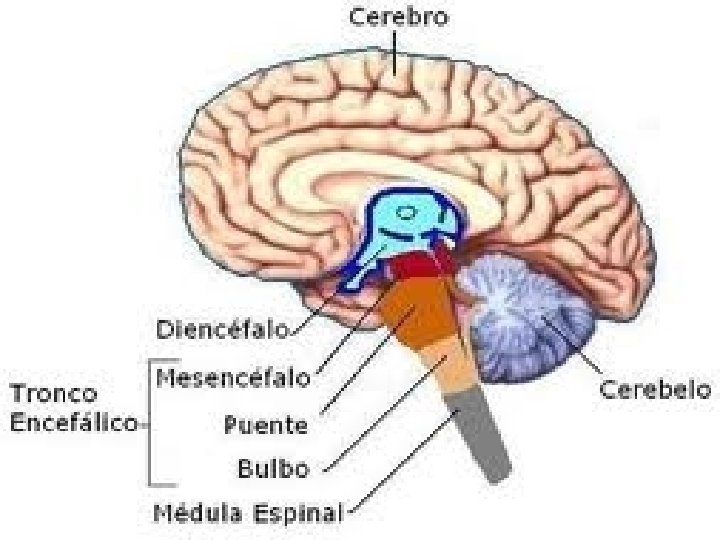 Divisiones del Encéfalo: v. Tronco Encefálico _ Bulbo Raquídeo _ Puente _Mesencéfalo v. Cerebelo v. Di encéfalo _Hipotálamo _Tálamo v. Cerebro