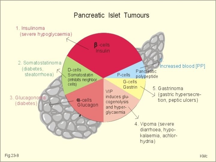 Cáncer de páncreas � Histología: 90% adenocarcinomas 5% islotes pancreáticos � Distribución: � Clínica inespecífica. Ictericia Dolor severo, tromboflebitis migratoria, diabetes, alteraciones psiquiátricas y pancratitis aguda (5%) cabeza 60% cuerpo 15 -20% cola 5%
