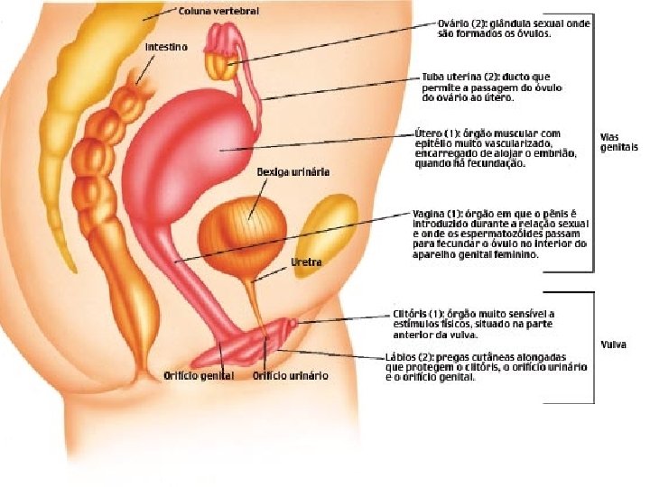 Sistema reprodutor feminino é composto por: • • • Ovários Trompas Útero Vagina Vulva