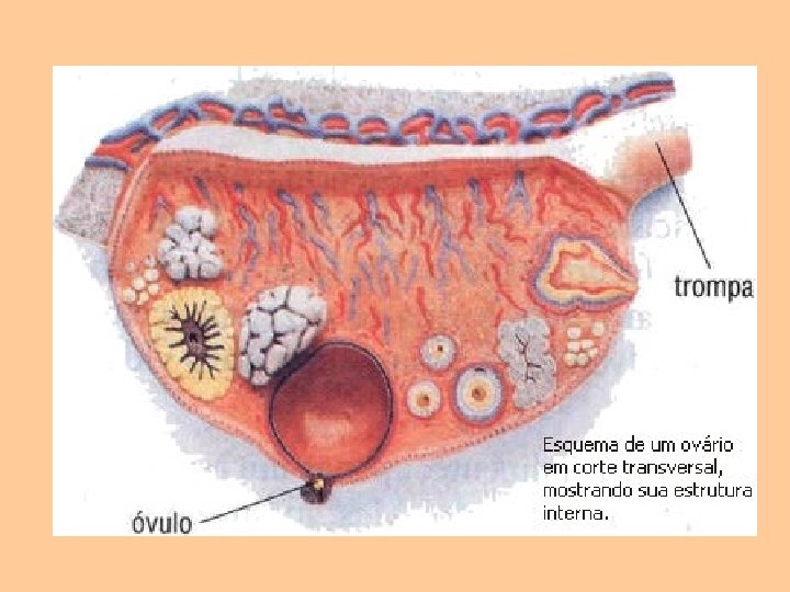 Ovários • São as Gônadas femininas que correspondem a duas glândulas mistas Produção de óvulos - exo Secreção de hormônios - endo estrógeno progesterona
