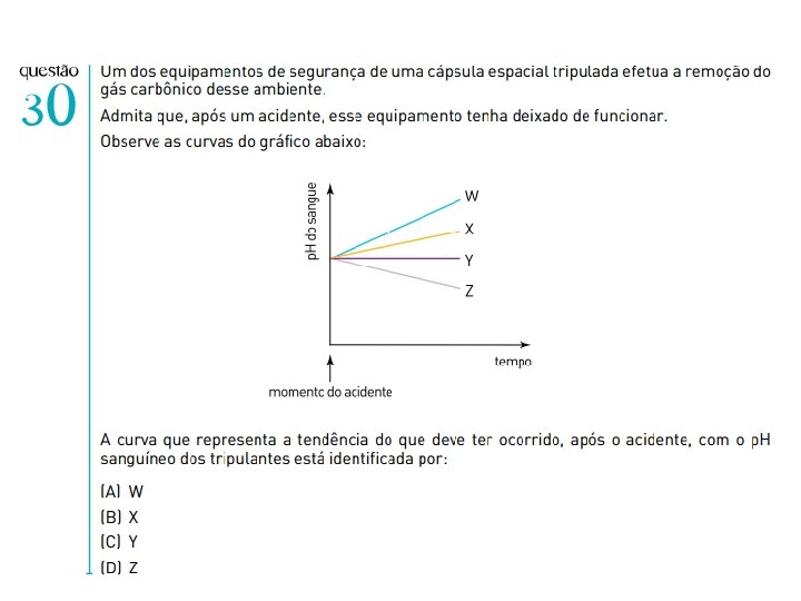 EXERCÍCIO A reação acima indica um processo que ocorre __1__ , para que aconteça __2__. Assinale a alternativa que preenche, correta e respectivamente, os espaços 1 e 2. a) nos capilares dos tecidos do corpo; absorção de CO 2. b) nos capilares dos pulmões; eliminação de CO 2. c) no bulbo; controle do p. H sanguíneo. d) nos capilares dos pulmões; eliminação de H 2 O. e) nos capilares dos tecidos do corpo; oxigenação das células.