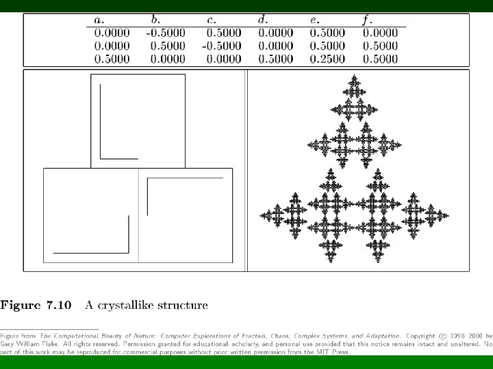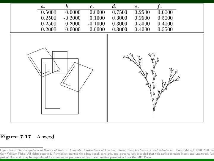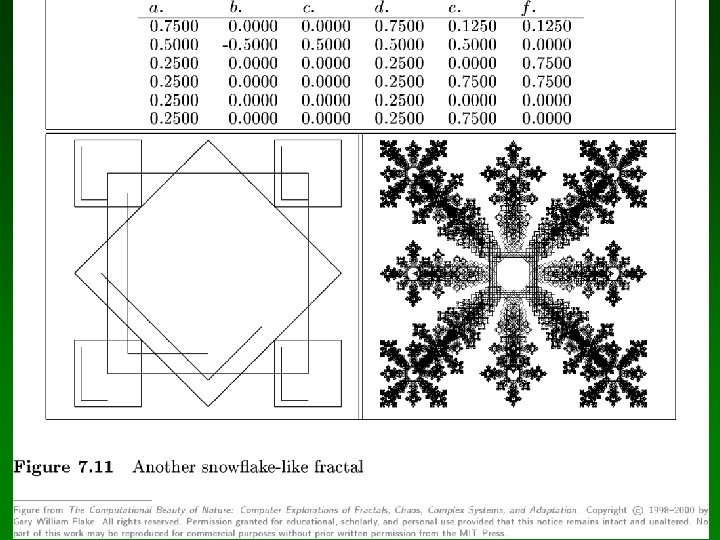 Tipos de IFS especiales • IFS en 3 dimensiones • Flame fractals – – Algoritmo de Scott Daves, 1992 Extensión de IFS Histograma de un sistema complejo Agrega transformaciones no lineales • IFS para generación y análisis de música