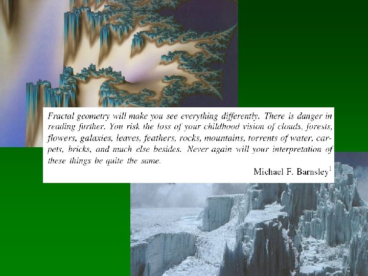Teorema del collage • Michael Barnsley – El “problema inverso” de la geometría fractal – Un problema inverso consiste en obtener los valores de parámetros a partir de los datos observados – Comenzar por la imagen y encontrar el IFS que converja en él – Para encontrar un IFS cuyo atractor “se parezca” a una imagen determinada, se debe localizar un conjunto de transformaciones afines (mapas de contracción) tal que la “suma” (o collage) del conjunto se asemeje al conjunto correspondiente – Encontrar contracciones tal que cada una de ellas sea una pequeña pieza del conjunto