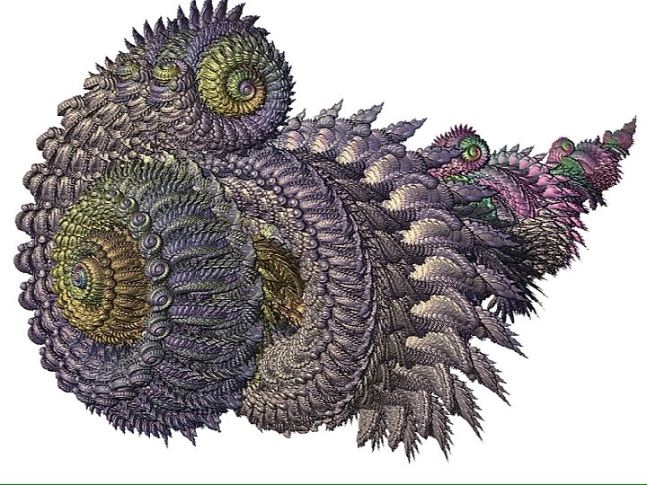 Programas para trabajar con IFS • IFS 3 D – Matrices en tres dimensiones – Sólo estructuras al azar, o a mano. Texturas polvorosas únicamente. Visualización 3 D en tiempo real. • Visions of Chaos – Fractales genéricos, con importante módulo de IFS. Altísima calidad gráfica. Mutaciones, pero no actualización cruzada en tiempo real. No se pueden tratar ni visualizar los vectores. – Formato de archivo compatible. Muchos ejemplos. • Xeno. Dream – Uno de los programas de fractales más evolucionados. No es estrictamente de IFS. No tiene matrices. • Fairy Brush 2, Dino. Coomy, Sprouts, Turban shell festive.