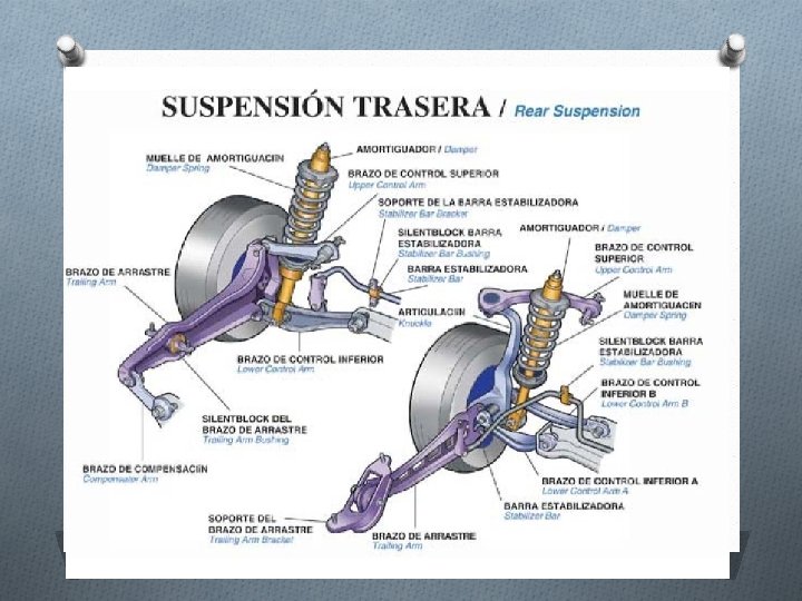 Función O El sistema de suspensión está diseñado para soportar el peso suspendido del vehículo, es un medio elástico que provee una amortiguación a la carrocería y otorga comodidad y seguridad a los ocupantes y la carga del vehículo.