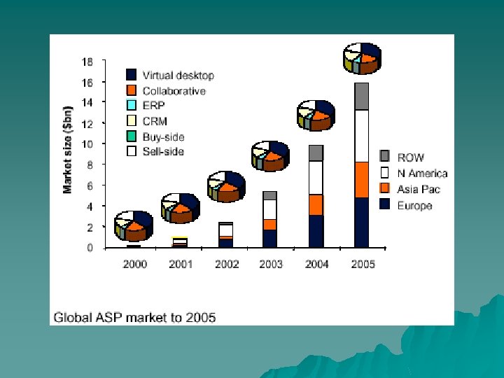 ASP: ¿Qué es un ASP? u Los ASP (Application Server Provider) o servicios de software online, son un modelo de negocio de Internet. u Ofrece una solución de red integrada y total. u La idea consiste en alquilar en vez de comprar. u Las principales ventajas del ASP: - Costes fijos previsibles - Reducción de tiempos de implantación - Incremento de productividad - Acceso desde cualquier punto y en todo momento a la información - Actualización permanente - Acceso a las mejores tecnologías de mercado del momento a precios asequibles.