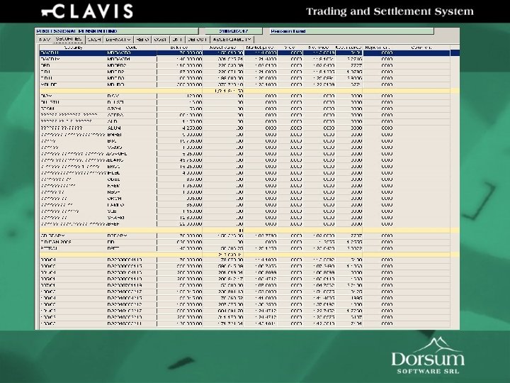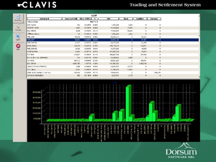 Sistemul Clavis Tranzactii • • • Cu actiuni, obligatiuni (titluri de stat, note compensare) Cu futures si cu optiuni (put/call) Hedging SWAP si forward pe devize si rata dobanzii Repo Cu depozite si credite Functii • Generare scadente • Sincronizare cu portofoliul de referinta Evaluarea performantelor