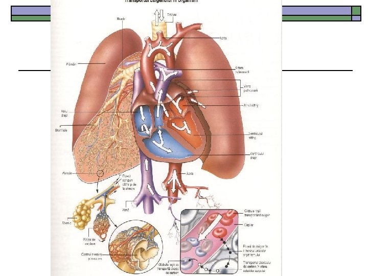 Membrana alveolară Membrana capilarului Eritrocote , , incărcate” cu CO 2. Trecerea CO 2 din sânge în alveolă Trecerea O 2 din aerul alveolar în sânge Eritrocite cu oxigen, sânge arterial
