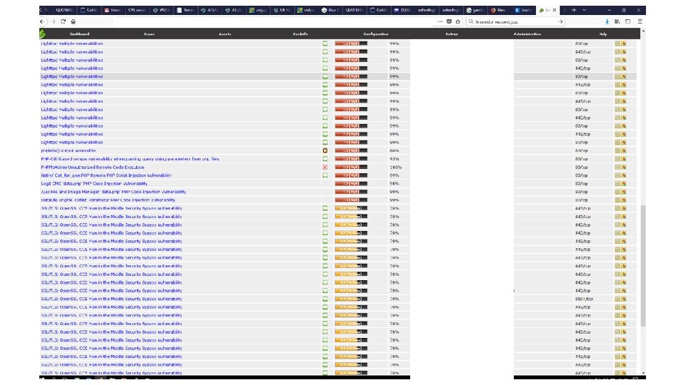 Open. Vas • Running Open. Vas for Vulnerability Scanning • Installed on top of Kali Linux • Mostly worked out of box • We have quite a few vlans and subnets so scanning across network range takes too much time • So running `nmap –sn <ip-range>` first and then feeding that list as input for openvas scan. • Much better