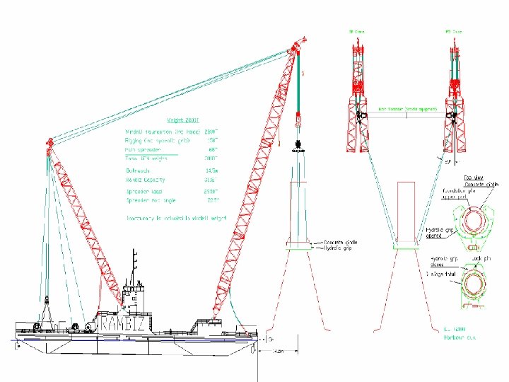 De bouw van de funderingsvoeten die op de zeebodem staan
