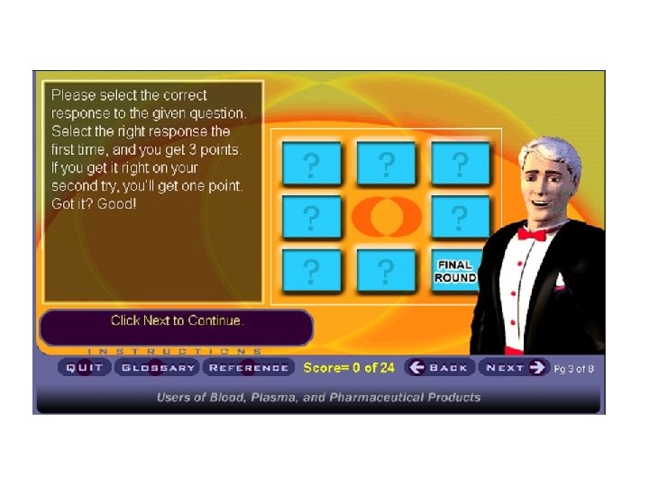 Heuristic Review • Example of Opportunity For Improvement Opportunity 1 (4 reports. Avg. Severity=2. 25, Avg. Extent=2. 34, Heuristics Used: 1, 3) Consider providing more user feedback about where they are and what they should do next. Examples cited: · No Page progress indicator · No indication of how to start Suggestions: · Provide a page-progress indicator, such as “page 3 of 12” · Put a “Click a section below to start: ” on the first screen, as a TOC header