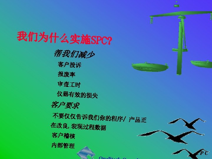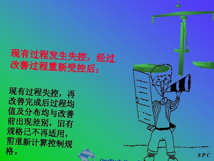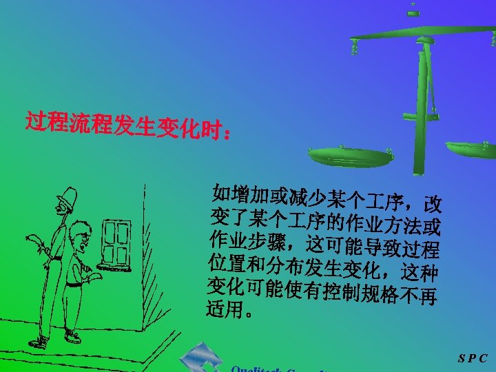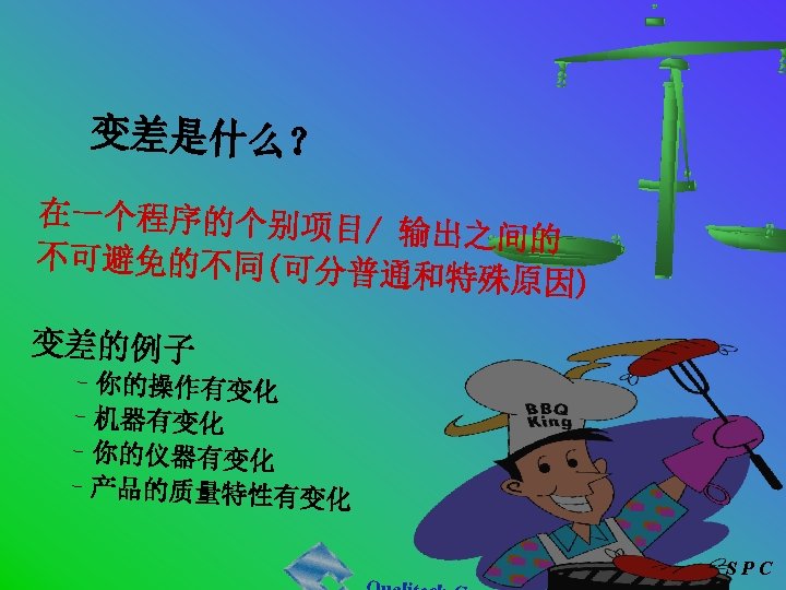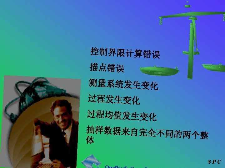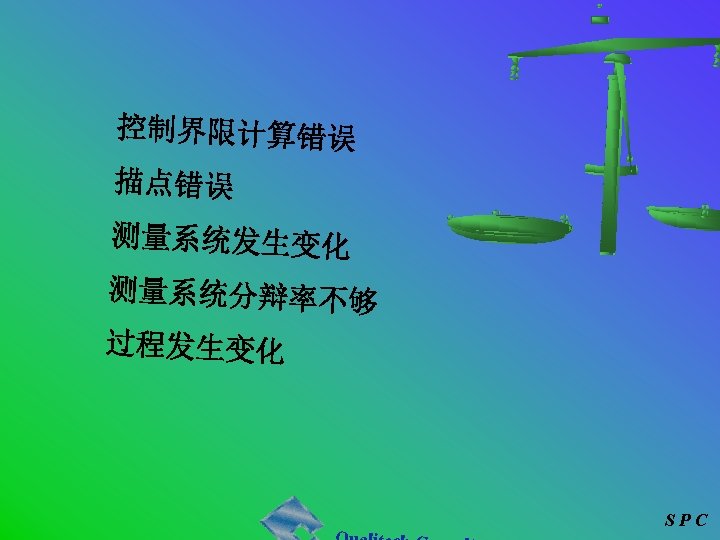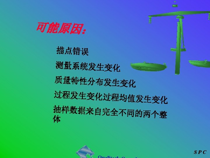 变差的起源…… 测量 Measurement 环境 Mother-natured 人力 Manpower 机械 Machine 变差 方法 Methods 物料 Material SPC