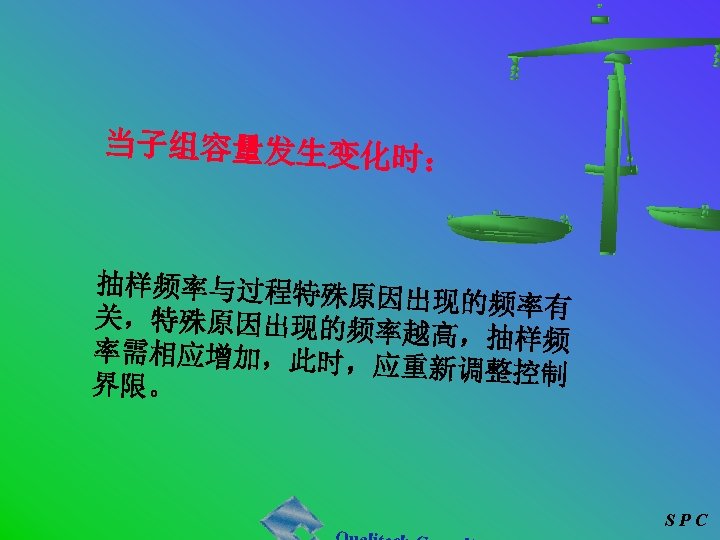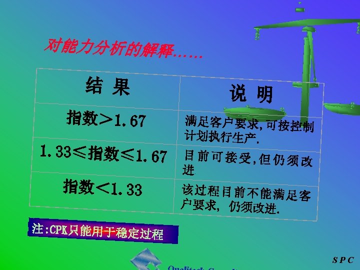 X-R图常数表 n 2 D 4 D 3 A 2 3 3. 27 1. 88 2. 57 1. 02 4 5 6 7 8 9 10 2. 28 2. 11 2. 00 1. 92 1. 86 1. 82 1. 78 0. 08 0. 14 0. 18 0. 22 0. 42 0. 37 0. 34 0. 31 0. 73 0. 58 0. 48 SPC