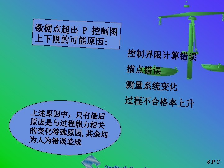 R 图 Upper Control Limit (UCL) Center Line (CL) 0 超出控制上限 SPC