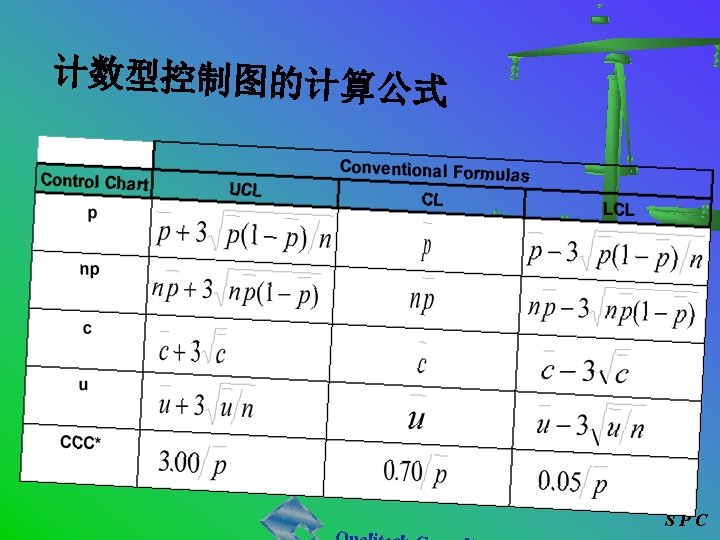 控制图-控制过程的 具 典型的控制图由三条线 组成 : Upper Control Limit (UCL) Center Line (CL) Lower Control CL :控制中限 UCL: 上控制限 LCL: 下控制限 Limit (LCL) SPC
