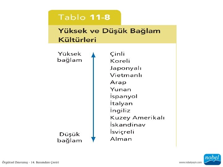 Yüksek Bağlam Kültürleri: İletişimin sözsüz ve imalarla gerçekleştirildiği kültürlerdir. Düşük Bağlam Kültürleri İletişimin kelimelerle gerçekleştirildiği kültürlerdir.
