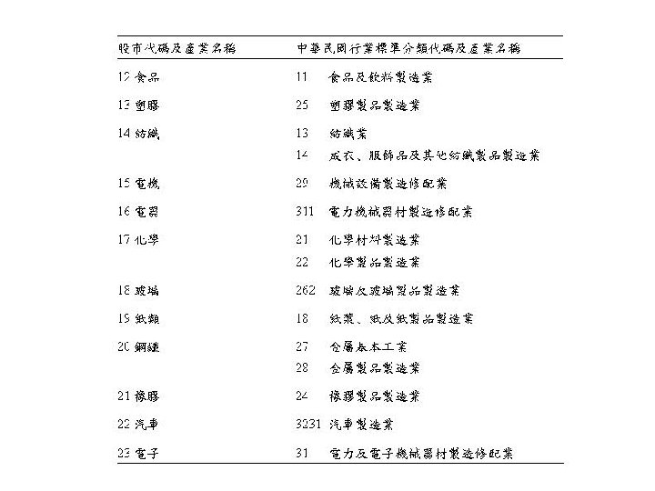 各年各產業之最小有效規模 1981 1982 1983 1984 1985 1986 1987 1988 12 1038535 1127968 1217402 1306835 1396269 1485702 1548340 1610978 13 164046 176048 188049 200051 212052 224054 272080 320107 14 243003 320924 398846 476768 554689 632611 635541 638472 15 185193 188342 191491 194640 197788 200937 230535 260134 16 391736 432356 472977 513597 554217 594838 621534 648230 17 507374 644793 782212 919631 1057051 1194470 1430466 1666461 18 502171 446540 390909 335279 279648 224017 232089 240162 19 229264 238967 248670 258373 268076 277780 302824 327868 20 582305 653657 725010 796362 867714 939067 955340 971613 21 260687 269228 277769 286310 294852 303393 319958 336524 22 - - - - 23 387031 409255 431479 453703 475927 498151 560833 623515 產業\年
