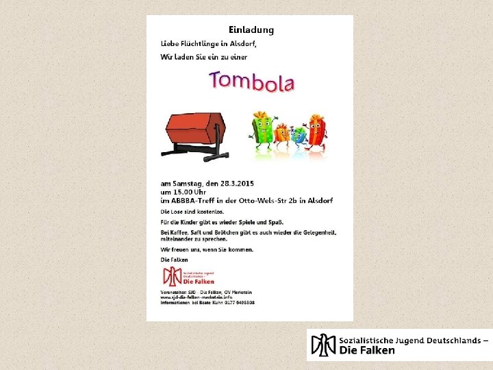 SJD – Die Falken, OV Merkstein Flüchtlinge Willkommen in Alsdorf