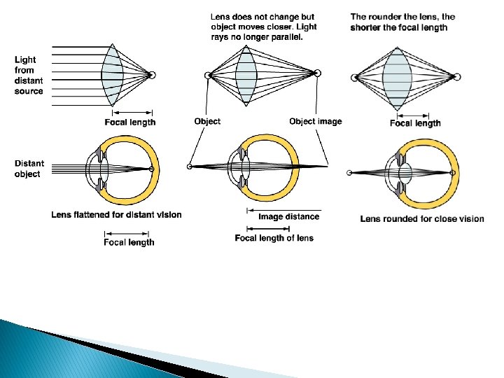 Linsan � Breytingar á lit linsunnar er orsök skýmyndunar (cataract). � Hornhimnan, lögun linsunnar og lengd augnkúlunnar ráða nákvæmni ljós-brotsins. Ef augnkúlan er of löng liggur skerpupunkturinn framan við sjón-himnuna. Þetta fólk sér illa langt frá sér og er nærsýnt (myopia)