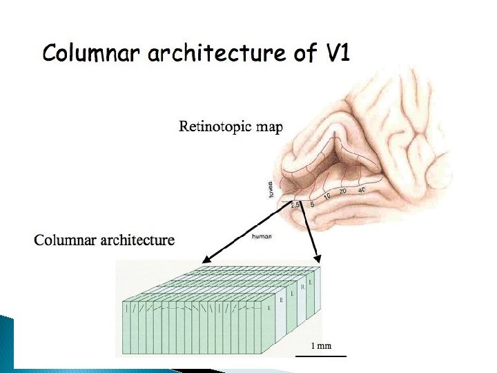 Sjónbörkur (visual cortex) � Taugasímar frá LGN leiða í ipsilateral sjónbörk � Er í 6 lögum � Þaðan fara upplýsingar til undirsvæða � Þessi undirsvæði sjónbarkar sjá um mismunandi þætti skynjunar ◦ Litir, hreyfing, rýmisgreind, lestur etc.