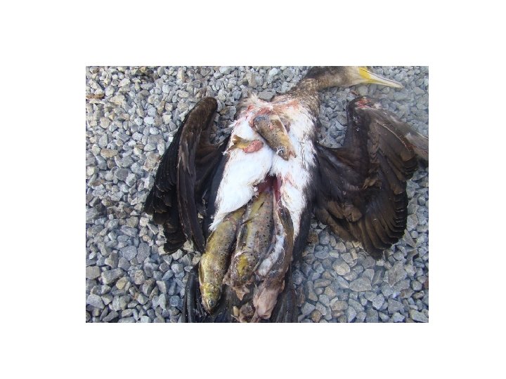 Resultater fra Ringkøbing Fjord 2000 – 2004 Radiotelemetri (2000, 2002): Laksesmolt 40 – 50 % af mærkerne blev fundet i kolonien på Olsens Pold CW-mærkning (2003): 25 % af de mærkede lakse smolt blev ædt i den 3 uger lange smolt vandrings periode. 40 – 50 % af de mærkede ål blev ædt det første år. CW- mærkning (2004): Alle (100%) mærkede små skrubber blev ædt på 15 dage, og igen blev 25 % af de mærkede smolt ædt. Gylp analyser: 30. 000 lakse smolt, 1, 4 millioner skrubber, 38. 000 ål og formentlig en betydelig del af rekrutteringen for andre arter blev spist på en sæson.
