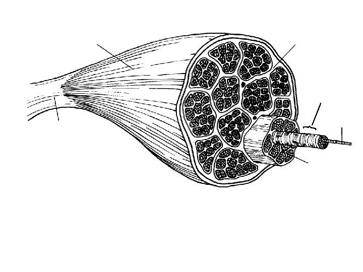 Muscle fiber (cell) Blood vessel Fascicle (bundle of muscle fibers) Epimysium (wraps entire muscle) Perimysium Endomysium (between fibers) Tendon Bone Figure 6. 1
