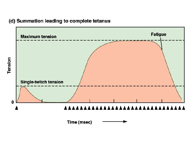 Recruitment • Weak stimulus activates low threshold neurons. These regulate slow fatigue resistant fibers. • Stronger stimuli fatigue resistant oxidative fast twitch fibers • Very strong stimuli glycolytic fast twitch fibers
