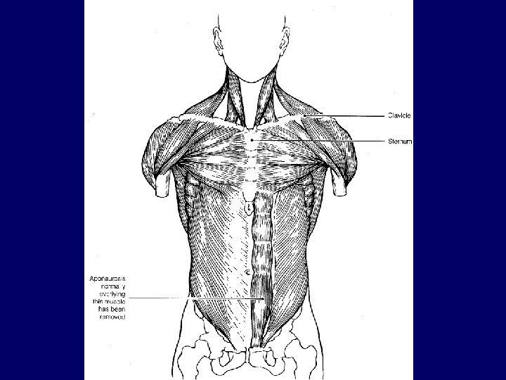 Anterior Thorax – Abdominal Girdle (cont. ) • Transversus abdominis – Deepest muscle of the abdominal wall. – Fibers run horizontally across the abdomen. – Originates from the lower ribs and iliac crest and inserts into the pubis. – Function to compress the abdominal contents.