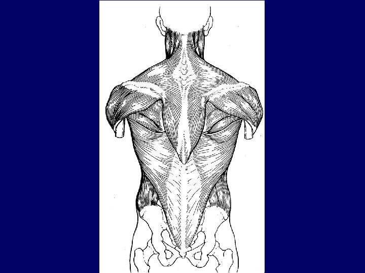 Posterior Thorax (cont. ) • Latissimus Dorsi – Large flat muscle pair the covers the lower back. – Originates on the lower spine and ilium and sweeps upward to insert on the proximal humerus. – Extends and adducts the humerus. – Powerful muscle for swimmers on the power stroke.