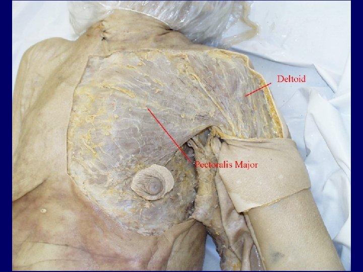 Anterior Thorax (cont. ) • Deltoid – Triangular shaped the forms the rounded shape of your shoulders. – Favorite injection site (less than 5 m. L). – Originates at the scapular spine and clavicle. – Inserts into the proximal humerus. – Prime mover of arm abduction.