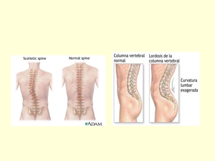 Abnormal curvatures of the spine: • KYPHOSIS – hunchback • LORDOSIS – swayback • SCOLIOSIS – lateral curvature