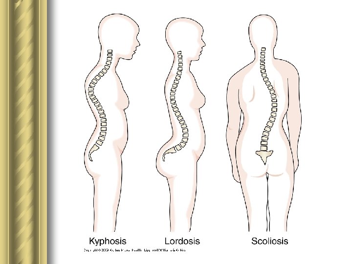 Structural Disorders l Curvatures of the spine – Kyphosis (hunchback) – Lordosis (swayback) – Scoliosis (curvature) l Cleft palate l Flatfoot