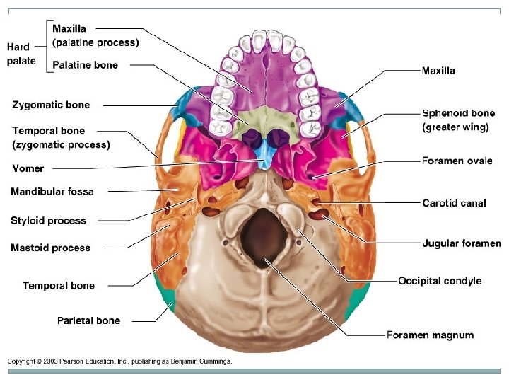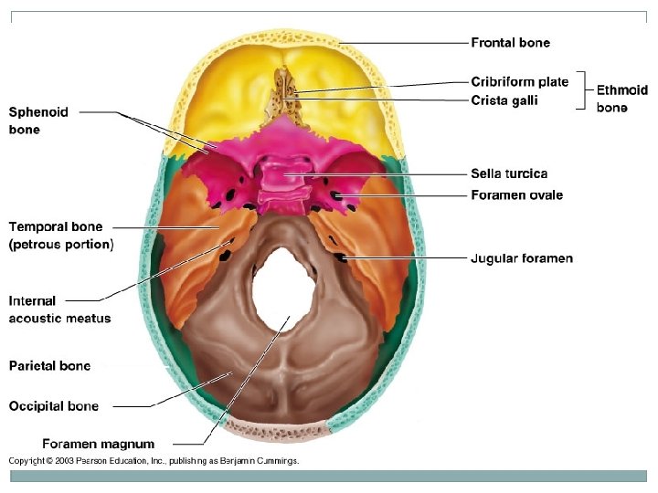 The Eight Cranial Bones 6. Occipital Bone – Most posterior bone of the cranium. Forms the floor and back wall of the skull.