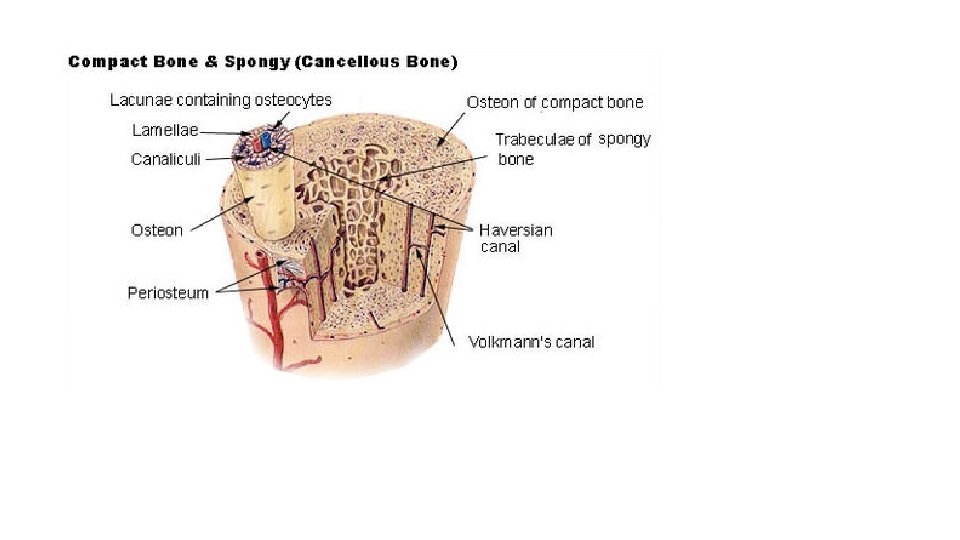 Bone Tissues Bones consist of different types of tissue, including compact bone, spongy bone, bone marrow, and periosteum. All of these tissue types are shown in Figure. • Compact bone makes up the dense outer layer of bone. Its functional unit is the osteon. Compact bone is very hard and strong. • Spongy bone is found inside bones and is lighter and less dense than compact bone. This is because spongy bone is porous. • Bone marrow is a soft connective tissue that produces blood cells. It is found inside the pores of spongy bone. • Periosteum is a tough, fibrous membrane that covers and protects the outer surfaces of bone.