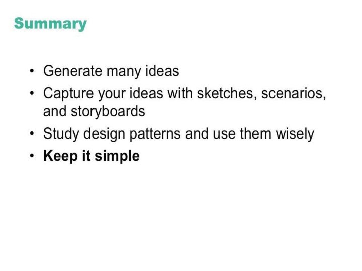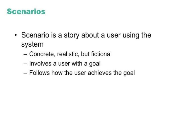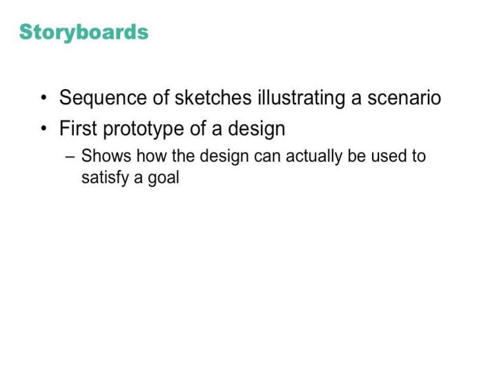 Storyboarding – a series of key frames as sketches • originally from film; used to get the idea of a scene • snapshots of the interface at particular points in the interaction – users can evaluate quickly the direction the interface is heading Excerpts from Disney’s Robin Hood storyboard, www. animaart. com/Cellar/disneyart/90 robin%20 storyboard. jpg. html