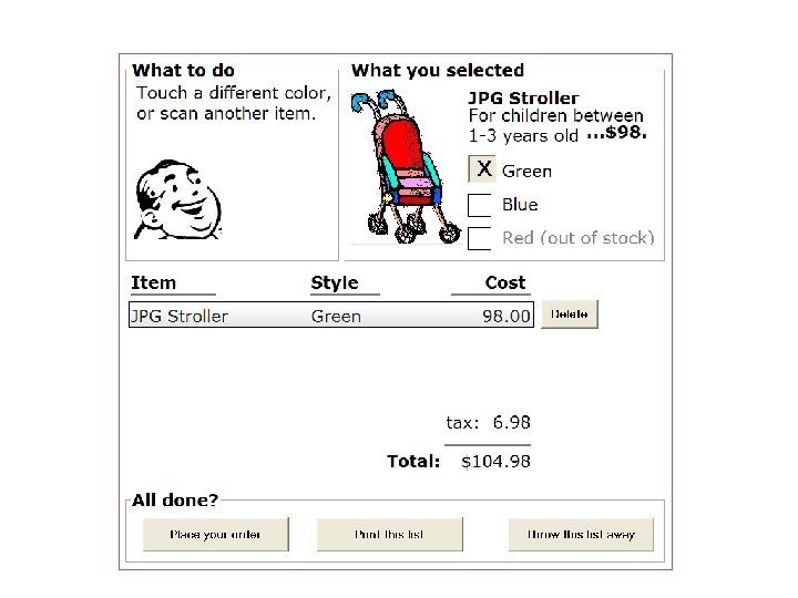 Initial screen Change the color -> Scan the stroller -> Place the order ->