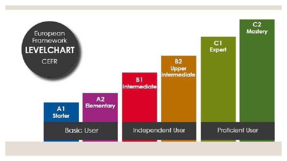 The Framework ◦ Basic ◦ A 1 ◦ A 2 ◦ Independent ◦ B 1 ◦ B 2 ◦ Proficient ◦ C 1 ◦ C 2